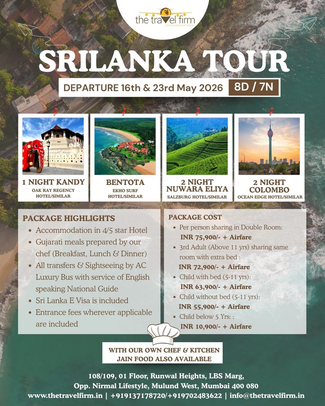 •  Per person sharing in double room: INR 75,900/- + Airfare